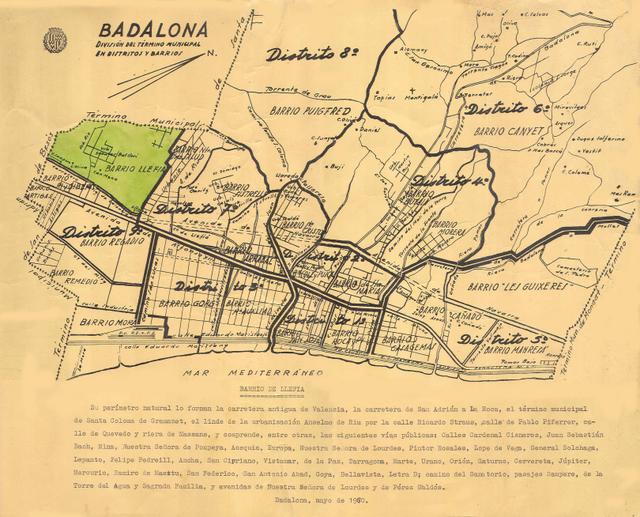 1960 Plànol de districtes i barris de Badalona Data: 30/01/06 Fonns Félix Rizo Bover