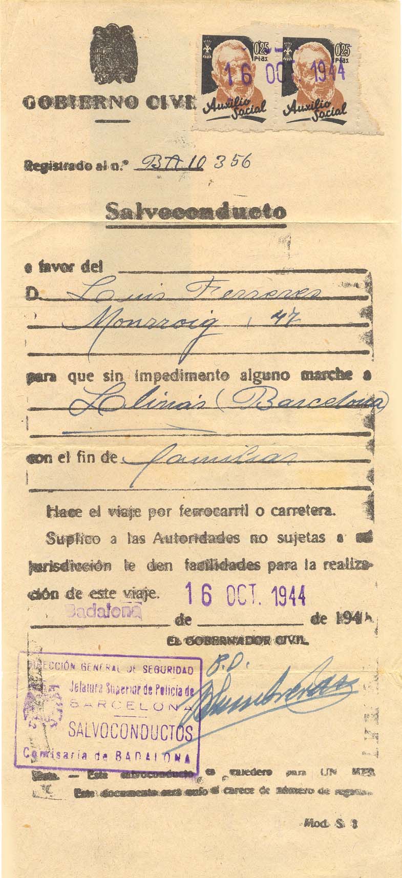 1944 Salconduit del Sr. Ferreres