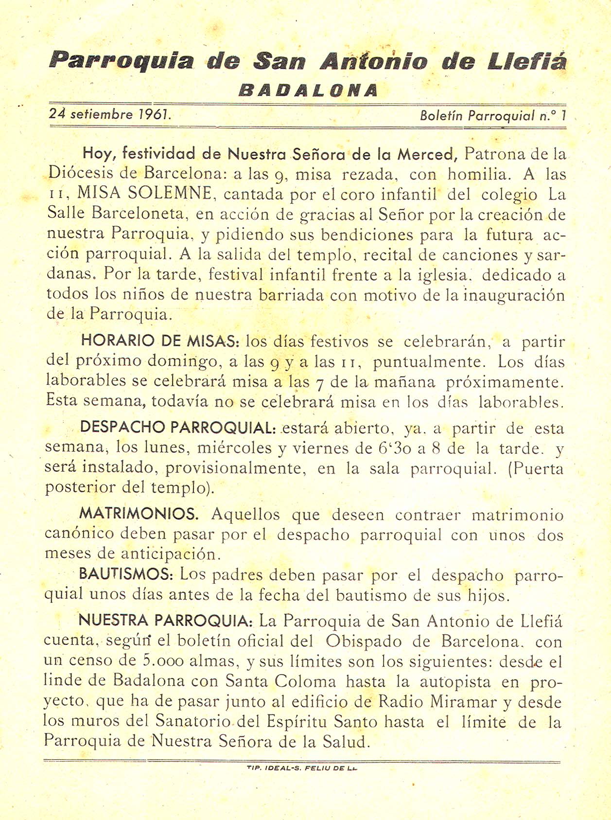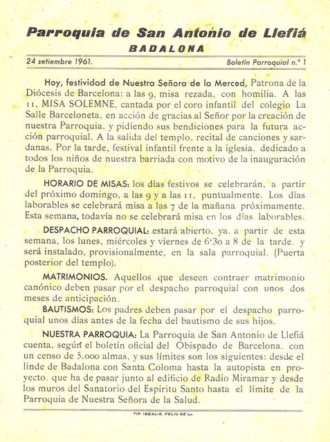 1961 Boletin parroquial núm 01