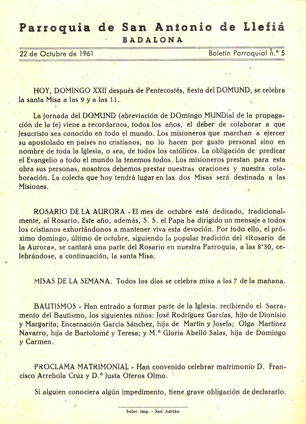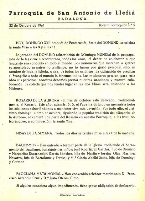 1961 Boletin parroquial núm 05