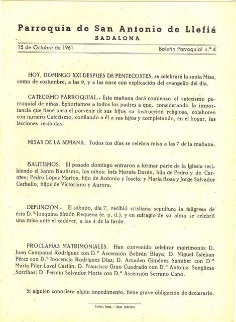 1961 Boletin parroquial núm 04