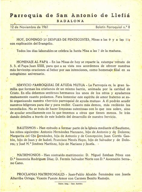 1961 Boletin parroquial núm 08