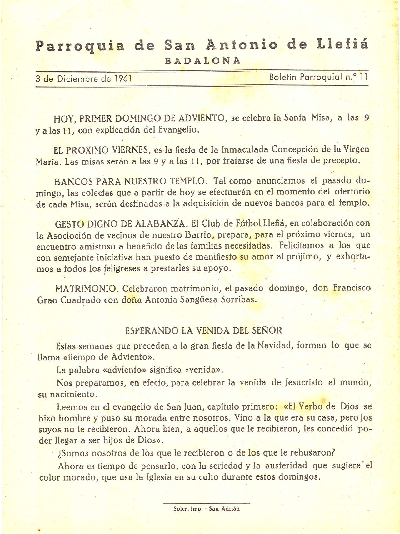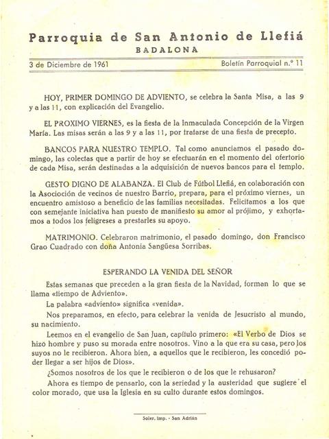 1961 Boletin parroquial núm 11