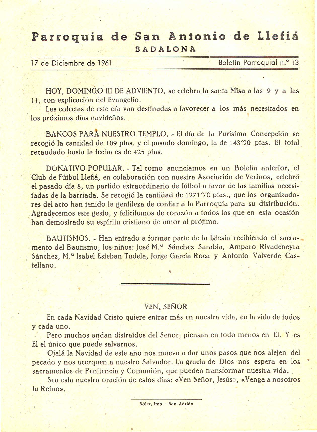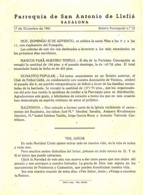 1961 Boletin parroquial núm 13