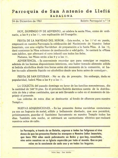 1961 Boletin parroquial núm 14