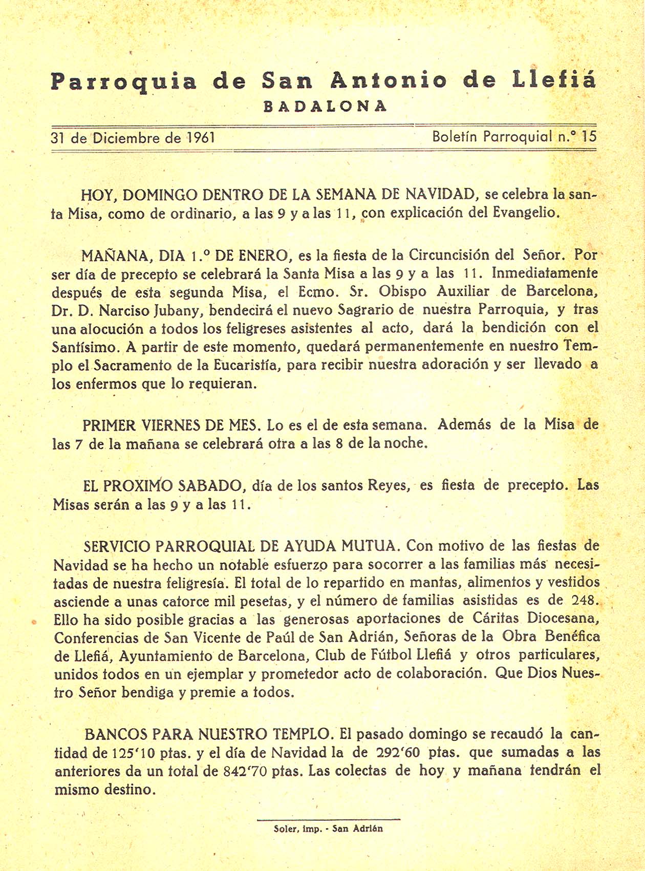 1961 Boletin parroquial núm 15