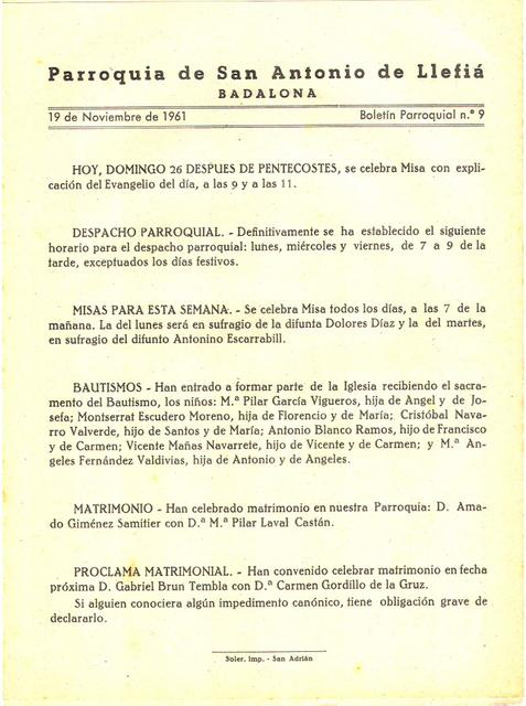 1961 Boletin parroquial núm 09