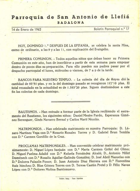 1962 Boletin parroquial núm 17