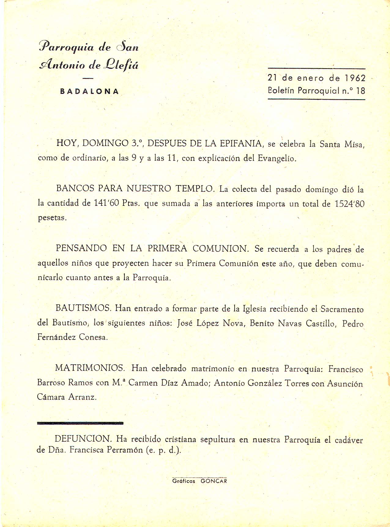 1962 Boletin parroquial núm 18