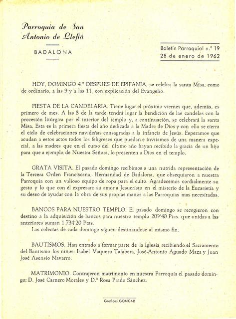 1962 Boletin parroquial núm 19