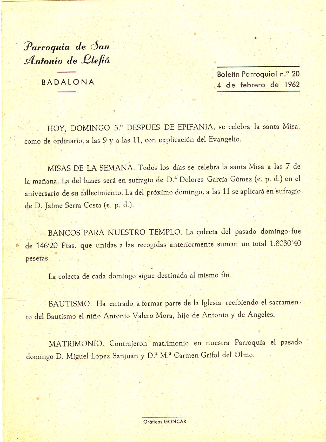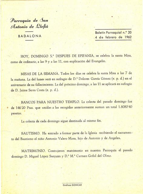 1962 Boletin parroquial núm 20