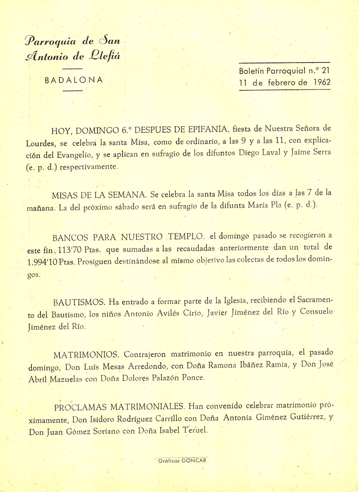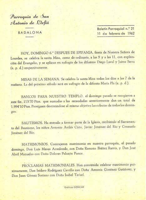 1962 Boletin parroquial núm 21