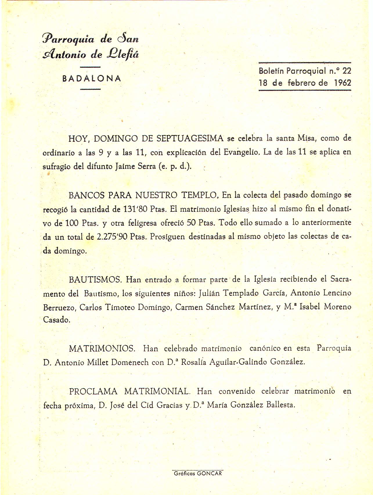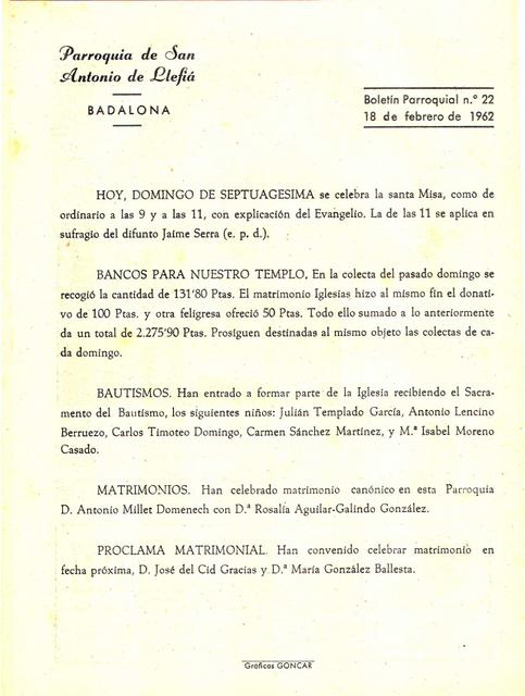 1962 Boletin parroquial núm 22