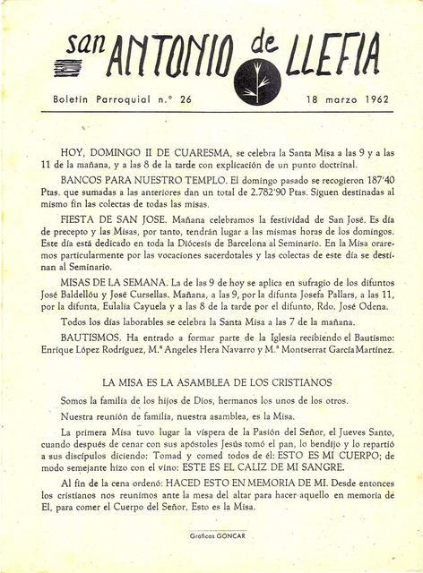 1962 Boletin parroquial núm 26