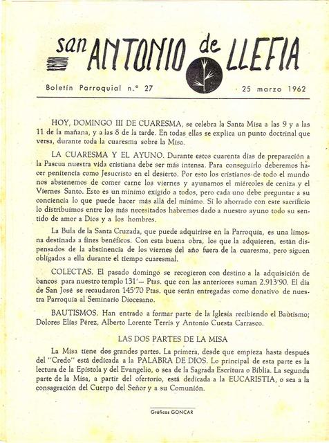 1962 Boletin parroquial núm 27