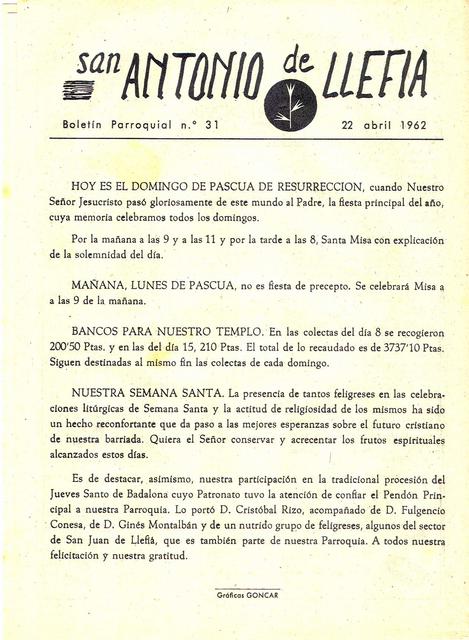 1962 Boletin parroquial núm 31