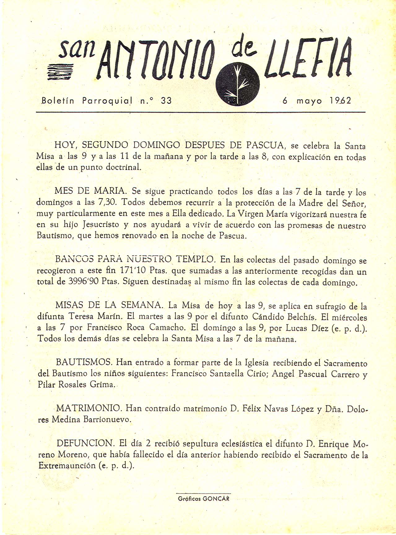1962 Boletin parroquial núm 33
