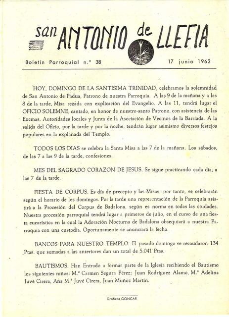 1962 Boletin parroquial núm 38