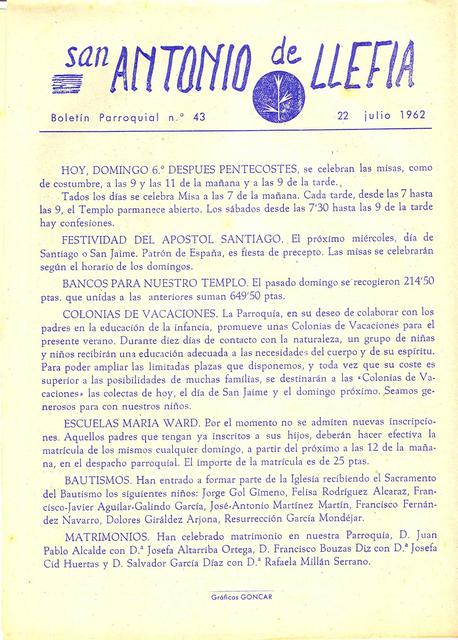 1962 Boletin parroquial núm 43