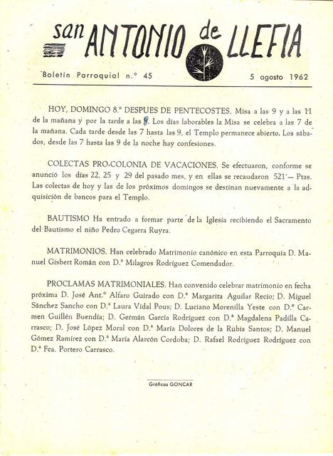 1962 Boletin parroquial núm 45