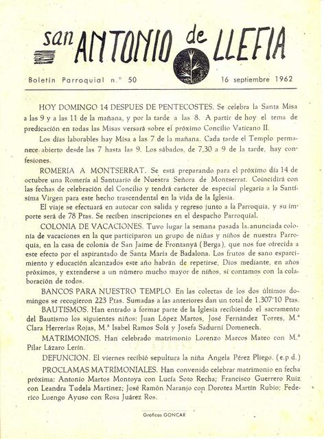 1962 Boletin parroquial núm 50