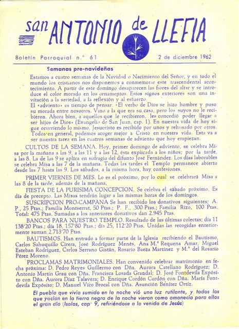 1962 Boletin parroquial núm 61