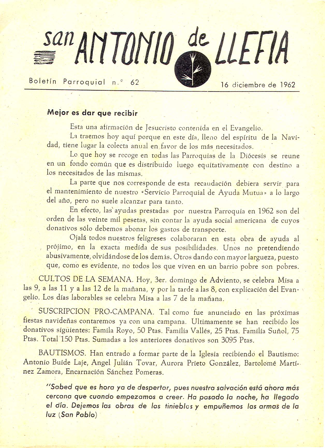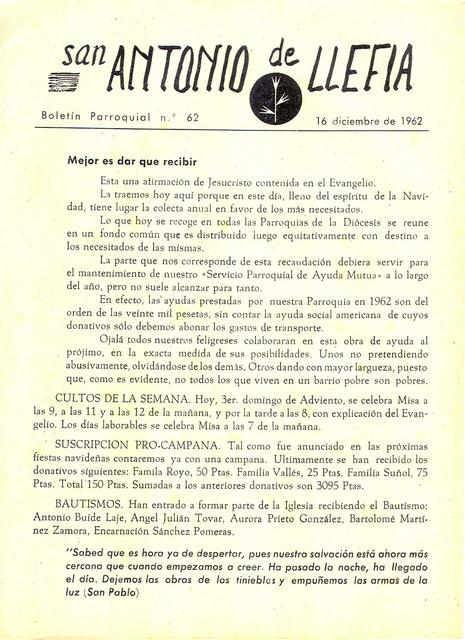 1962 Boletin parroquial núm 62