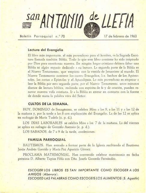 1963 Boletin parroquial núm 70