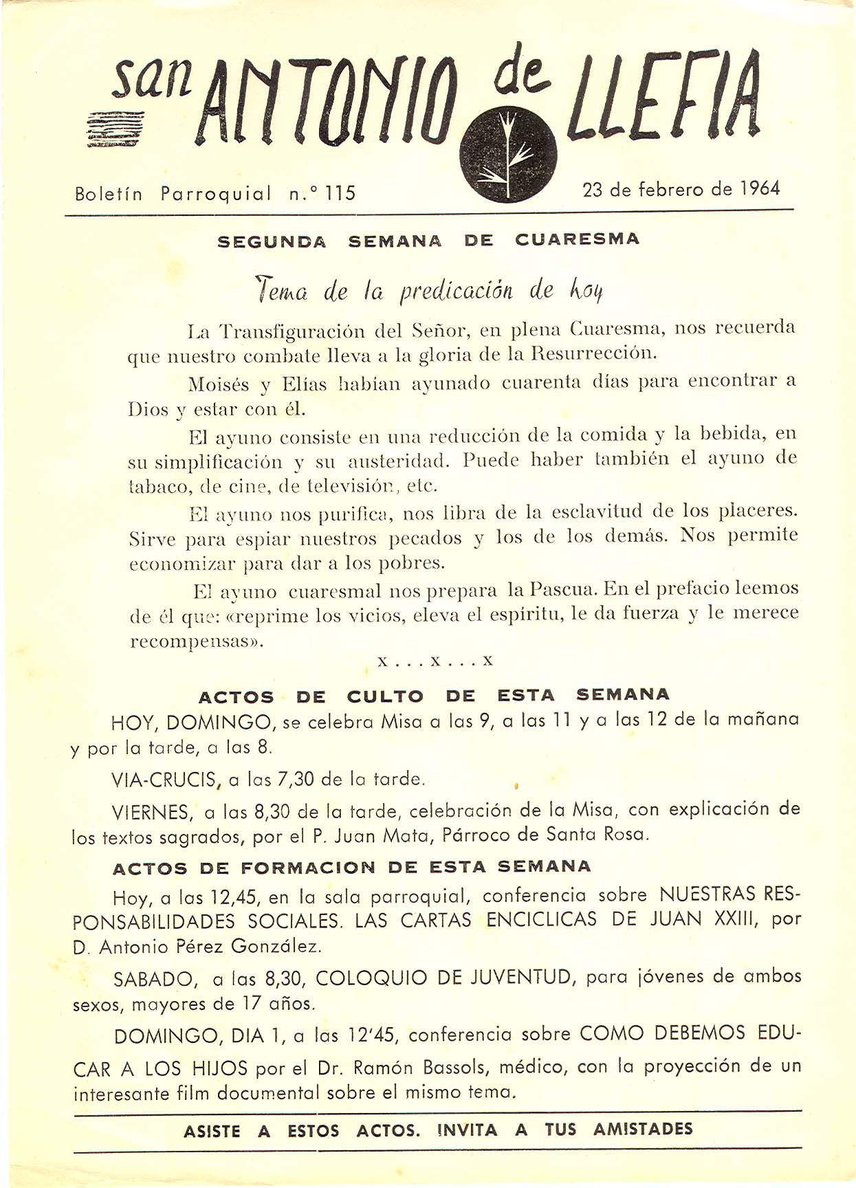 1964 Boletin parroquial núm 115 Data: 03/12/05