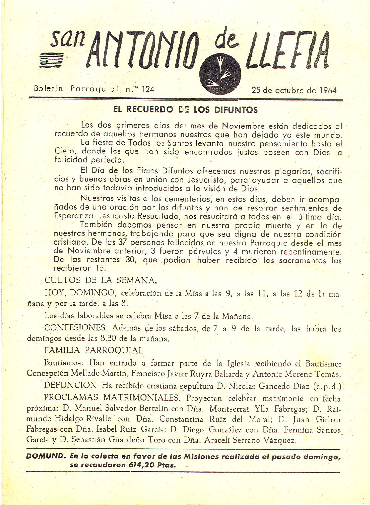1964 Boletin parroquial núm 124 Data: 03/12/05