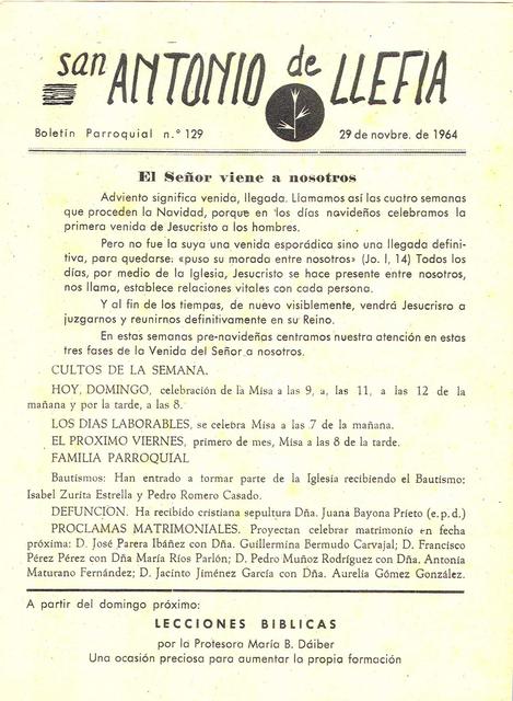 1964 Boletin parroquial núm 129 Data: 03/12/05