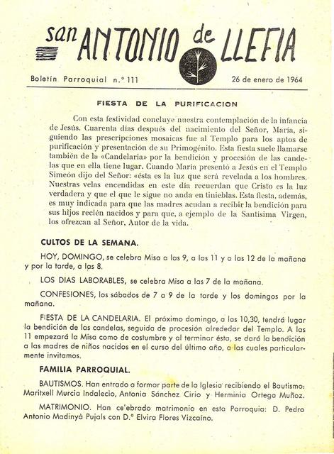 1964 Boletin parroquial núm 111