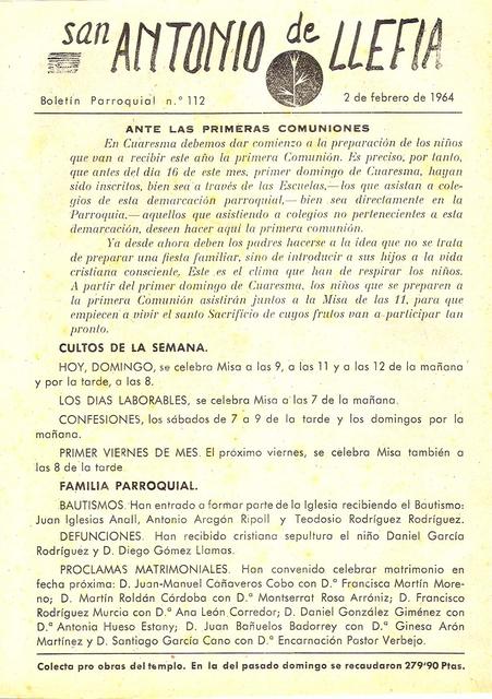 1964 Boletin parroquial núm 112
