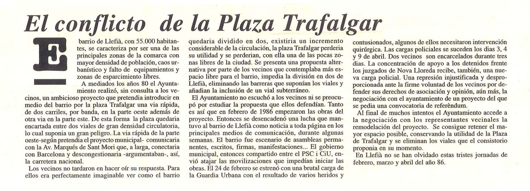1995. Article Revista Alhora. Batalla de la plaça Trafalgar