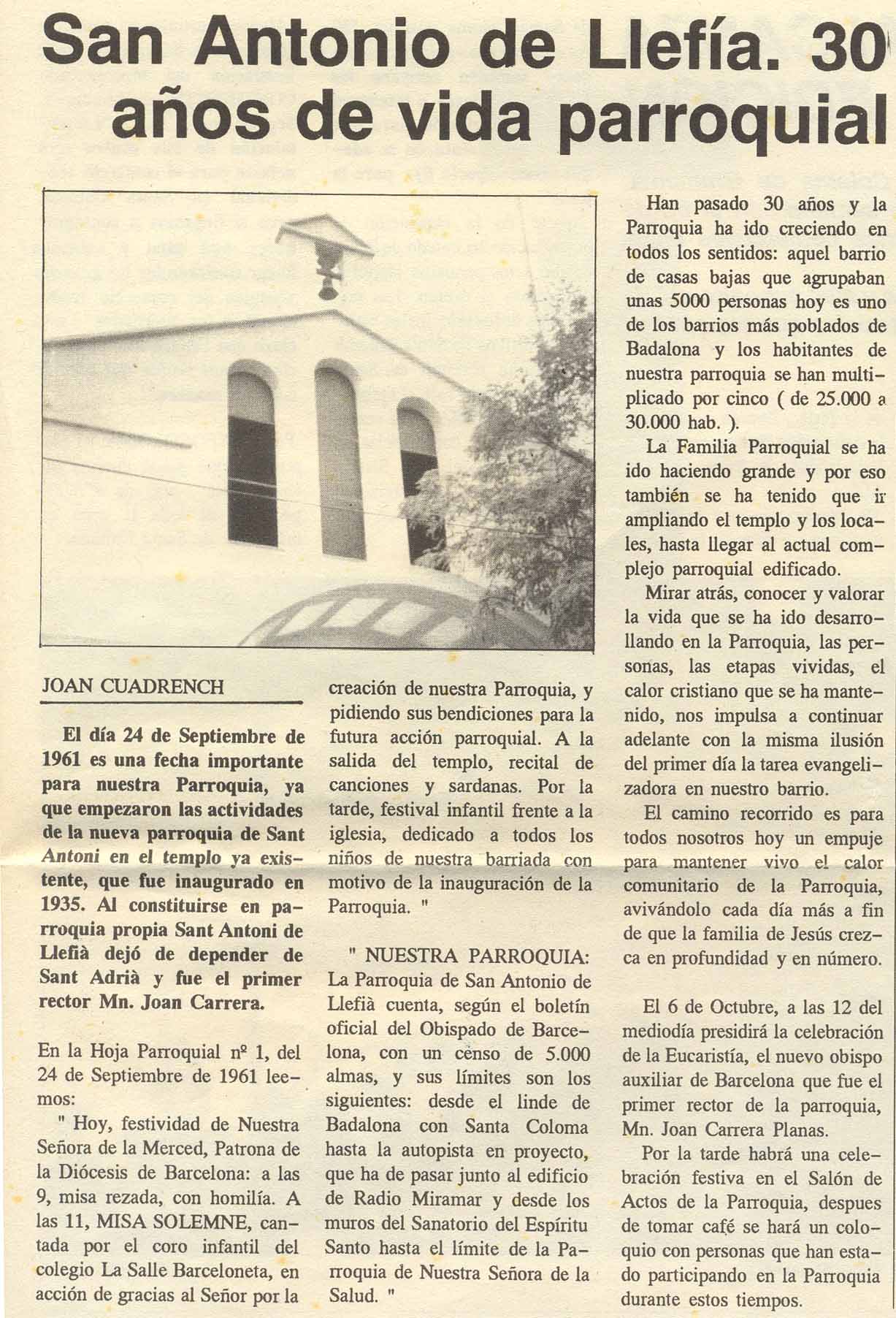 1991 30 anys de parròquia