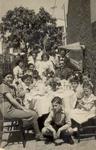 Any 1951. Festa de la 1a. Comunió de Dorita Alcazar celebrada amb veïns al pati d'una casa del carrer Rius i Taulet.