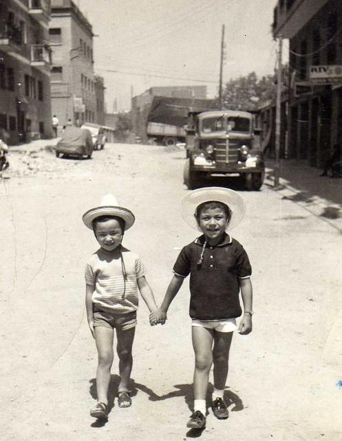 Roberto i Guillem, darrere el camió el propietari era el pare de Fernando Corbalán, veí del N º 8 al carrer Pompeia.