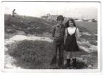 Fotografia presa de manera automàtica per Manel Martín. Hi surten Manel Martín i la seva esposa Felisa Molina en els terrenys on posteriorment hi hauria una zona enjardinada entre els pisos anomenats d'IBUSA (entre l'av. Amèrica i l'av. Atlàntida), coneguda popularment com "La Fuente de Colores". La foto se situa enfront de l'actual local de l'AV Sant Joan de Llefià Alt, just on hi ha una taula de ping-pong. Feta amb una càmera Mamiya Secor i revelada per Manel amb una ampliadora Durst.