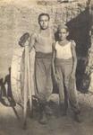 1943. Bòbila Joan Elias. Fons: família Ferreres. Data: 21/06/05 24 d'agost de 1943. Treballadors de la bòbila de Joan Elias. A l'esquerra de la fotografia, presa al terrat de la bòvila, en Joaquim Ferreres Puyalto amb un garbell i, a la dreta, en Rafalet. Avui dia es trobarien dins el pati del col·legi Rafael Alberti.