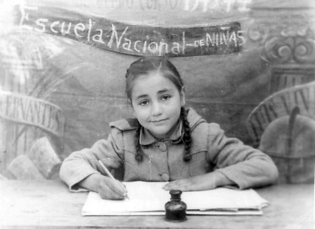 1943. Teresa Bertrán Royo. Fons: Teresa Bertrán Data: 24/09/05 A la fotografia Teresa Bertrán Royo a l'"Escuela nacional de niñas".