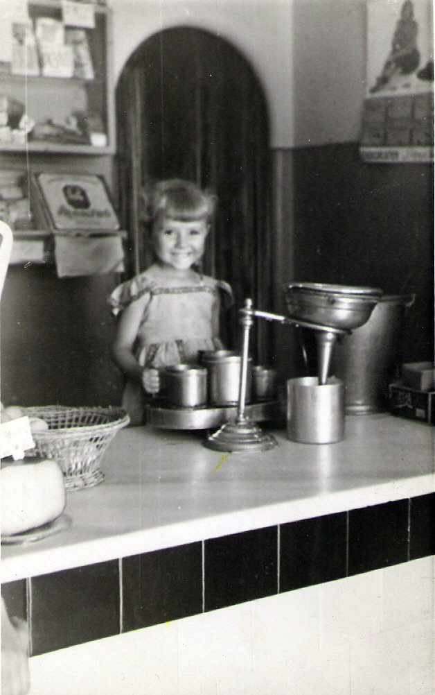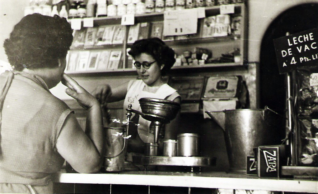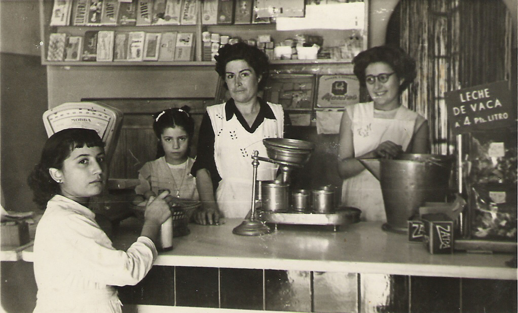 Actual Farmàcia del carrer Pérez Galdós. A la fotografia Rosita del Rio, neboda de Luis.