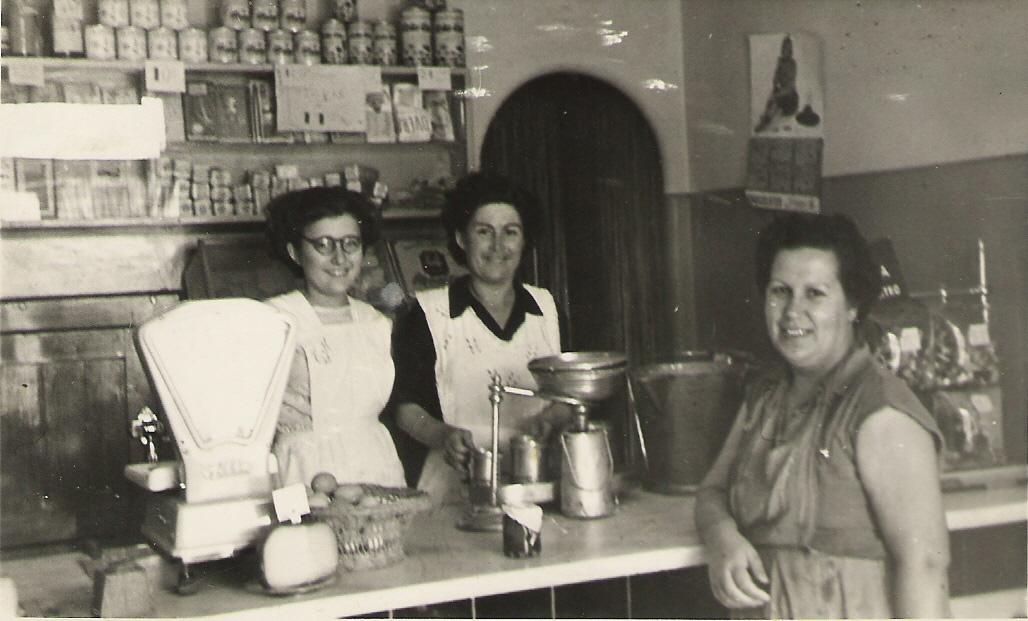 Actual Farmàcia del carrer Pérez Galdós. A la fotografia Teresa Navarro Riera; Antonia,