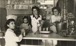 Actual Farmàcia del carrer Pérez Galdós. A la fotografia Teresa Navarro Riera; Antonia,