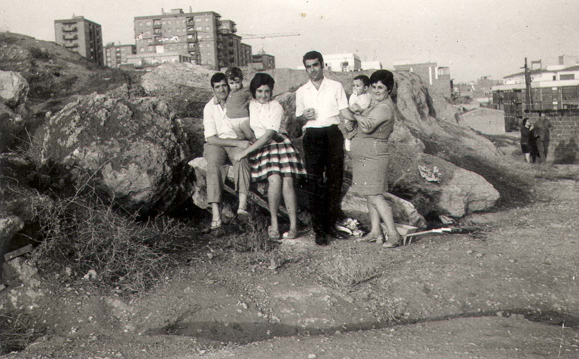 1971. Av. Pius XII. Fons: Francisco Aroca Delegido Data: 24/11/08 Fotografia datada el 19/10/1971. Foto feta per sobre del camp de futbol on actualment es troba l'IES Júlia Minguell, a la dreta podem veure part del mur superior del camp de futbol i al fons els blocs de la ronda Sant Antoni, en el centre la família Aroca i la família Egea.
