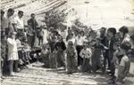 Grup d'escoltes "Boy Scouts" de la parròquia de Sant Antoni de Llefià. Fotografia presa en l'actual ronda de Sant Antoni, el nen de la dreta és Josep Valero, la monitora Rosi anomenada pel grup "Akela", el nen del centre és Juan Carlos Rodríguez. Al fons col·legi Maria Ward.