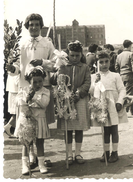 A la fotografia la famÃlia Camuñas. De fons la xemeneia d'una de les bòbiles del barri.