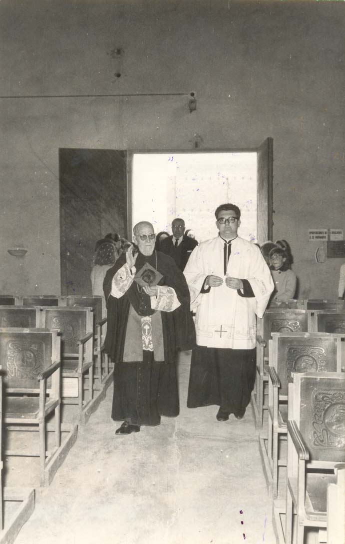 1963 Benedicció ampliació parròquia Data: 28/06/05 Arribada el 15 de desembre de 1963 del bisbe auxiliar de Barcelona, Dr. Narcís Jubany, per beneir l'ampliació del temple i la nova imatge del Sant Crist.