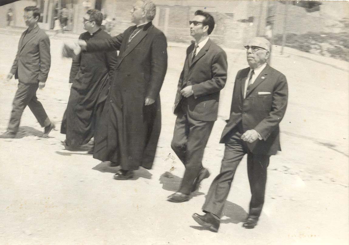 Visita de l'arquebisbe de Barcelona, Dr. Marcelo González Martín, l'1 de maig de 1968. En la fotografia acompanya a l'arquebisbe Mn. Carrera i els senyors Rizo "Alcalde de barrio", Parra i Diego Jiménez.