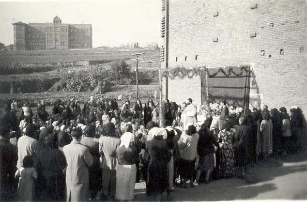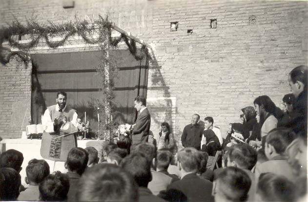 L'any 1953 comença a escoltar-se missa a l'exterior del temple. A l'interior hi viuen algunes famílies. Aspecte de les misses dites per pares missioners.