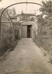 Porta del garatge-capella en el jardí de la família Escarrabill, al carrer Mare de Déu de Lorda, entre el carrer La Pau i Vistamar. En aquest garatge es van celebraron les primeras misses davant de la construcció de la capella i després posterior església de Sant Antoni de Pàdua.